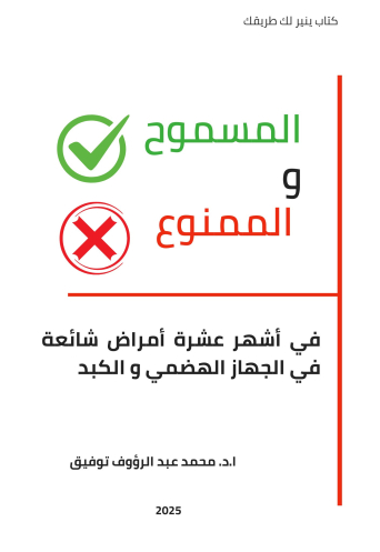 ???? **Book Title:** **The Allowed and the Forbidden** *A Practical Guide to the 10 Most Common Digestive and Liver Diseases* **Book Description (English – For Kotobna Page)** Are you struggling with acid reflux, irritable bowel syndrome, fatty liver, or constipation? Not sure what to eat, what to avoid, or when it’s time to see a doctor? This Arabic-language book offers a clear, structured, and interactive guide to the 10 most common digestive and liver conditions in the Arab world. Written by Prof. Dr. Mohamed Abdelraouf Tawfik — a consultant gastroenterologist and university professor — this book translates medical knowledge into practical daily actions. ✅ What’s inside? * Straightforward explanations for each condition * Detailed “Allowed vs. Forbidden” food and drink charts * Digestive-friendly medical recipes * Daily lifestyle tips and simple exercises * Quick diagnostic tests and interactive quizzes * A golden advice card at the end of each chapter --- ???? This is an **early-release edition**. Buyers of this version will receive the updated full version for free upon release. --- **Pages:** 132 **Language:** Arabic **Format:** PDF (Digital) **Target audience:** General readers, patients, medical students **Copyright:** Registered via Safe Creative --- ???? *Note: This book is entirely in Arabic.*